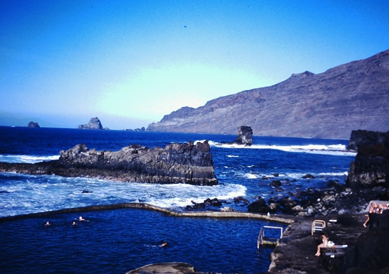 Vista de las piscinas naturales de La Maceta, con vistas de los Roques de Salmor |