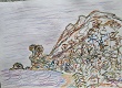 Experimentelles figürliches Zeichen und Malen Figur, Landschaft, Raum