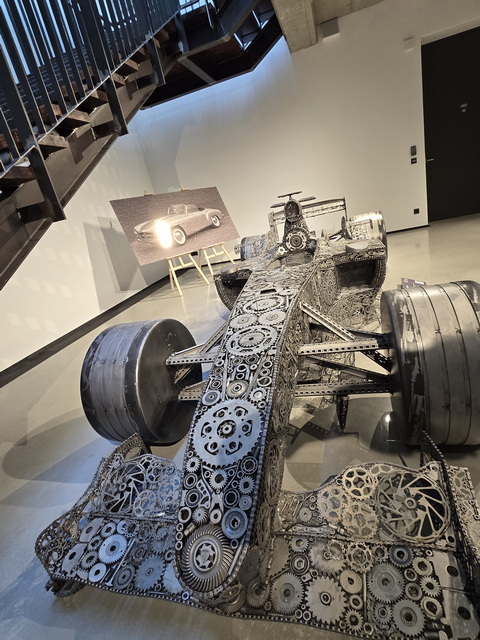 | Skulptur "F1-2000" aus der Ausstellung "Giganten aus Stahl". Die Skulptur ist ein Unikat, gefertigt aus tausenden von Einzelteilen | Skulptur "F1-2000" aus der Ausstellung "Giganten aus Stahl". Die Skulptur ist ein Unikat, gefertigt aus tausenden von Einzelteilen |