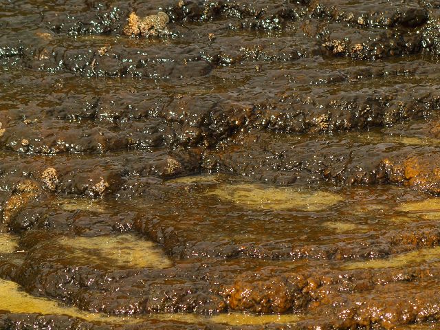 vent, filled with bubbling grayish-blue water that is usually enveloped in a