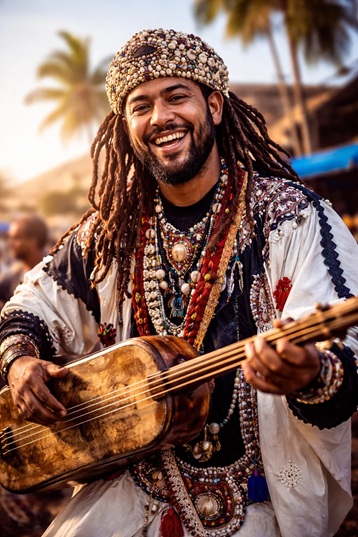 Direkt aus Casablanca kommt Saad Tiouly nach Hertme. Aufgewachsen mit den Klängen von Gnaoua, Issawa und Dakka Marrakchia, präsentiert er eine faszinierende Mischung aus uralter Tradition und modernen Einflüssen. Mit psychedelischen Klängen, energiegeladenen Auftritten und einer einzigartigen Verbindung von Gnaoua und... Ein wahrer Künstler und Handwerker. Saad Tiouly zählt zu den aufstrebenden Gnaoua-Meistern Marokkos. Die mitreißenden Rhythmen von Qraqebs, Trommeln und Gesang, das tiefe Summen seiner Guembri und akrobatische Tanzbewegungen reißen die Menge mit und bringen das Publikum zum Tanzen, Schwitzen und vollkommenen Eintauchen in die Musik. Schon früh mit marokkanischer Volksmusik aufgewachsen, praktizierte Saad Tiouly traditionelle Stile wie Gnaoua, Issawa und Dakka Marrakchia. Geboren und aufgewachsen in den verwinkelten Gassen der Medina von Casablanca, wurde er tief von deren pulsierender Kultur geprägt. Mit dem tiefen Wunsch, die Welt des Gnaoua zu bereichern, ist Saad Tiouly bestrebt, einen wertvollen Beitrag zu dieser jahrhundertealten Kunstform zu leisten. Mit innovativen Texten und Melodien schöpft er aus dem reichen Erbe der Gnaoui und integriert moderne Elemente, die ein zeitgenössisches Publikum – insbesondere die jüngeren Generationen, die er inspirieren und repräsentieren möchte – ansprechen. Auf der Bühne besticht Saad Tiouly durch einen Musikstil, der von einer einzigartigen Psychedelik und einer intensiven, fast frenetischen Performance geprägt ist. Seine energiegeladene und ausdrucksstarke Darbietung verleiht seinen Konzerten eine fesselnde Dimension, zieht das Publikum in ihren Bann und bereichert das Live-Erlebnis. Angetrieben von dem starken Wunsch, seine Musik über die Grenzen seiner Heimat hinaus zu tragen, verfolgt Saad eine universalistische Vision. Er erforscht aktiv die musikalische Fusion, insbesondere die Schnittstelle zwischen Gnaoua und elektronischer Musik, um neue Klanglandschaften zu erschaffen. Als wahrer Handwerker ist Saad Tiouly nicht nur ein musikalischer Innovator, sondern auch ein akribischer Künstler, der seine Identität mit viel Liebe zum Detail formt. Er entwirft seine eigene Bühnenkostümlinie – eine Kombination aus Eleganz und Originalität – und fertigt seine Instrumente, darunter die Guembri, in Handarbeit an, wobei das Experimentieren im Mittelpunkt seines kreativen Prozesses steht. von https://ebbmusic.eu/artists/saad-tiouly/ |