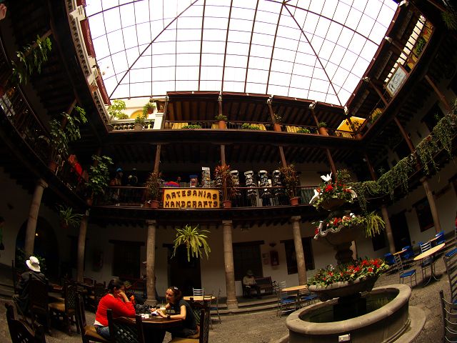 | Quito Innenhof mit Brunnen Quito | Innenhof mit Brunnen Quito Cafe Coleur |